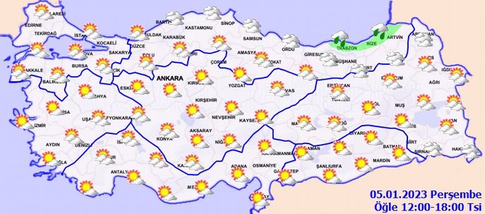Meteoroloji Genel Müdürlüğü tarafından yapılan son değerlendirmelere göre: Ülkemizin kuzey ve doğu kesimlerinin parçalı ve çok bulutlu, Karadeniz kıyıları, İstanbul'un Anadolu Yakası, Yalova, Kocaeli ve Sakarya çevreleri ile Kastamonu kıyılarının yağmurlu, Ordu, Giresun, Trabzon, Rize ve Artvin çevrelerinin iç ve yüksek kesimlerinin karla karışık yağmur ve kar yağışlı, diğer yerlerin az bulutlu ve açık geçeceği tahmin ediliyor. Marmara’da yer yer yoğun olmak üzere, iç ve doğu kesimlerde yer yer pus ve sis bekleniyor.