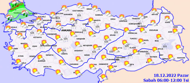 Kırklareli ve Edirne çevrelerinde beklenen yağışların yerel kuvvetli olması, yurdun iç kesimlerinde sabah ve gece saatlerinde pus ve yer yer sis görülmesi bekleniyor.