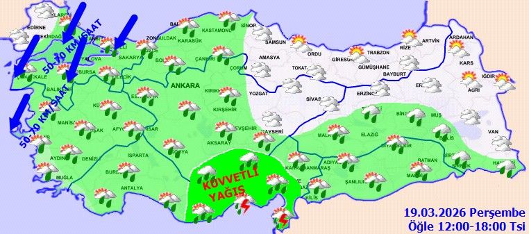 Meteoroloji Genel Müdürlüğü tarafından yapılan son değerlendirmelere göre: Ülkemiz genelinin parçalı ve çok bulutlu, Marmara (Edirne dışında), Ege, Akdeniz, İç Anadolu, Batı Karadeniz, Doğu Karadeniz'in iç kesimleri, Doğu Anadolu, Güneydoğu Anadolu ile Amasya, Tokat ve Çorum çevrelerinin aralıklı yağışlı geçeceği tahmin ediliyor. Yağışların, genellikle yağmur ve sağanak, Akdeniz kıyılarında yer yer gök gürültülü sağanak, iç kesimlerinin yüksekleri ile doğu kesimlerde karla karışık yağmur ve kar şeklinde olması bekleniyor. Yağışların, Güneydoğu Anadolu (Gaziantep ve Kilis dışında), Mersin, Adana, Hatay, Osmaniye, Niğde, Karaman, Bingöl, Muş, Elazığ, Şırnak, Hakkari ve Bitlis çevreleri ile Antalya'nın doğu, Van'ın güney kesimlerinde kuvvetli olacağı tahmin ediliyor. Sabah ve gece saatlerinde kuzeydoğu kesimlerde buzlanma ve don olayı ile sabah saatlerinde doğu kesimlerde pus ve yer yer sis bekleniyor. Doğu Karadeniz’in iç kesimlerinin yüksekleri ile Doğu Anadolu’nun yüksek kar örtüsüne sahip eğimli kesimlerinde çığ ve kar erimesi tehlikesi bulunmaktadır.