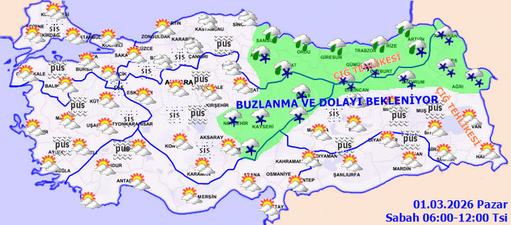 Diğer yerlerin de az bulutlu ve açık geçeceği tahmin ediliyor. Gece ve sabah saatlerinde Marmara ile iç ve doğu bölgelerde buzlanma ve don ile birlikte sis ve pus olayı da bekleniyor.