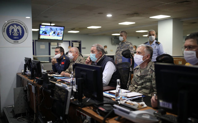 Operasyonu Milli Savunma Bakanı Akar, Genelkurmay Başkanı Orgeneral Yaşar Güler, Kara Kuvvetleri Komutanı Orgeneral Ümit Dündar, Hava Kuvvetleri Komutanı Orgeneral Hasan Küçükakyüz ve Deniz Kuvvetleri Komutanı Oramiral Adnan Özbal, Hava Kuvvetleri Komutanlığı Harekat Merkezi’nden sevk ve idare etti.