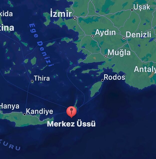Muğla'nın Datça ilçesine 155 kilometre uzaklıkta, Yunanistan'ın Kerpe adası yakınlarında meydana gelen sarsıntının derinliğinin 20,4 kilometre olduğu belirlendi.