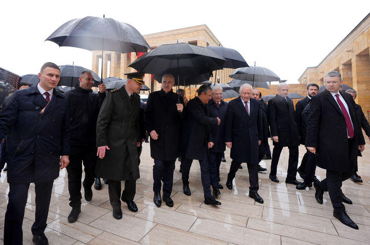 Heyet, Aslanlı Yol'dan yürüyerek Atatürk'ün mozolesine geldi. TBMM Başkanı Kurtulmuş'un mozoleye çelenk bırakmasının ardından saygı duruşunda bulunuldu ve İstiklal Marşı okundu. Kurtulmuş, daha sonra Misak-ı Milli Kulesi'nde Anıtkabir Özel Defteri'ni imzalayarak şunları yazdı: