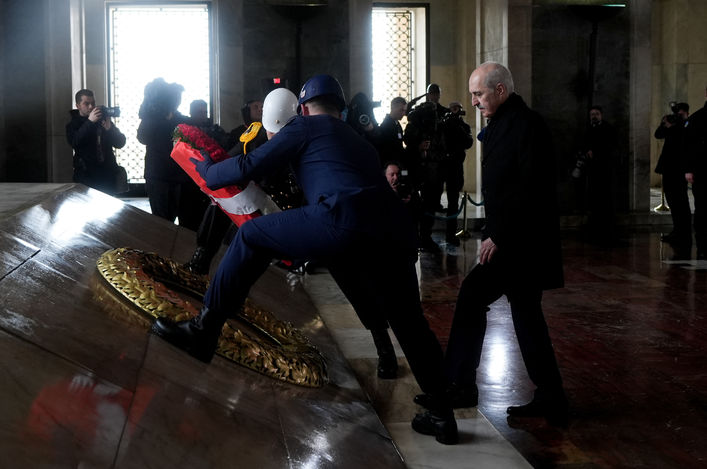 TBMM Başkanı Numan Kurtulmuş'un, Atatürk Anıtı'na kırmızı ve beyaz karanfillerden oluşan çelenk bırakmasının ardından saygı duruşunda bulunuldu, İstiklal Marşı okundu.