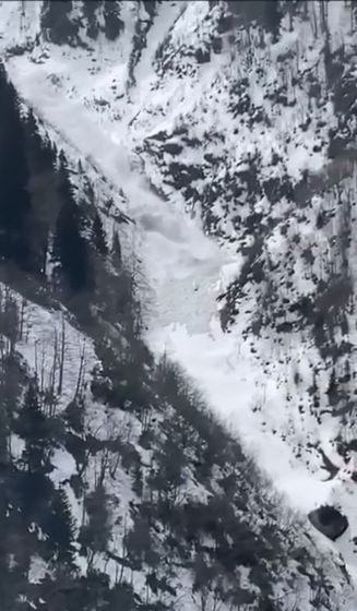 DHA'da yer alan habere göre çığın düşme anı da çevredeki kişi tarafından cep telefonu kamerasıyla görüntülendi.