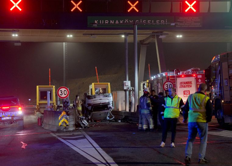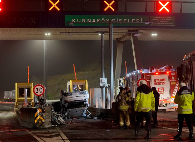 Pendik Kuzey Marmara Otoyolu Kurnaköy gişelerinde beton bariyerlere çarparak takla attığı kazaya ilişkin görüntüler ortaya çıktı. Görüntülerde aracın gişelere doğru hızla ilerlediği ve bir anda beton bariyere çarptığı görüldü.