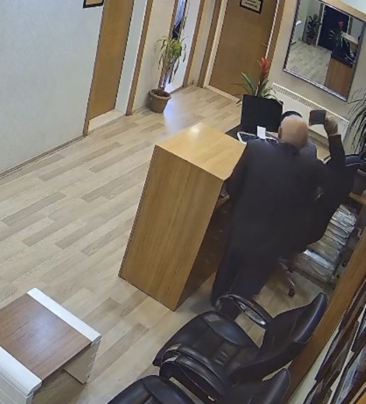 Öte yandan, saldırı anı belediye binasının içindeki güvenlik kameralarına yansıdı.