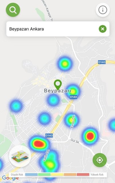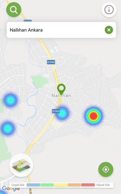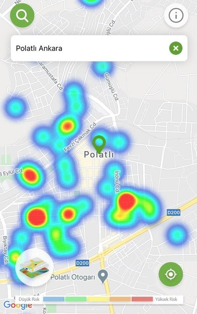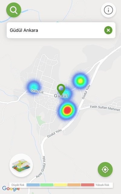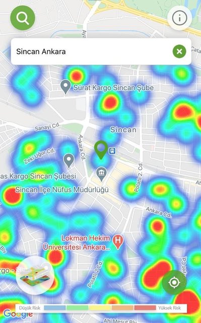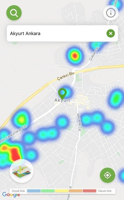 Ankara'da Sağlık Bakanlığı'nın 'Hayat Eve Sığar' mobil uygulamasında koronavirüs vaka yoğunluk haritası, özellikle son 1 ayda alınan tedbirler ve önlemlerle kırmızıdan, yeşile döndü