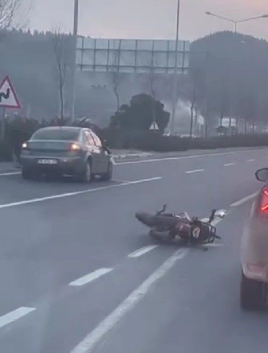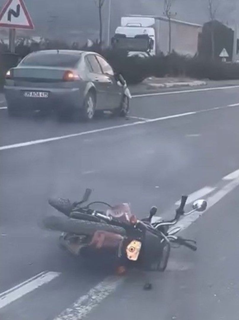 ÇARPMANIN ETKİSİYLE MOTOSİKLETTEN SAVRULDU