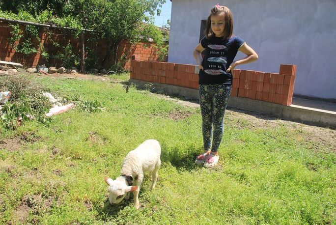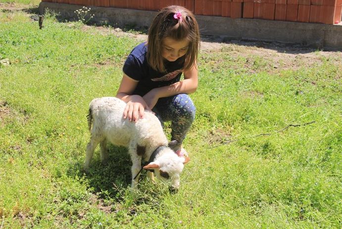 Çanakkale'nin Yenice ilçesi Akçakoyun köyünde 0-14 yaş arası sokağa çıkma yasağının esnetildiği ilk günde 8 yaşındaki Hanife Naz Tokuş, çocuk parkına gitmek yerine 1 aylık kuzusu 'Garip' ile sokaklarda gönlünce zaman geçirdi