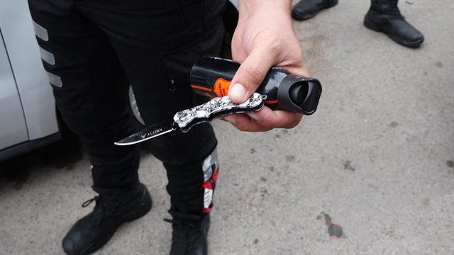 Bu sırada Orbay Çelik, yanındaki bıçağı taksi şoförünün boğazına dayadı. Durumu fark eden motosikletli polis timinin taksi içine biber gazı sıkmasının ardından Orbay Çelik ile yanındaki arkadaşı araçtan inerek, polisleri bıçakla tehdit etti.