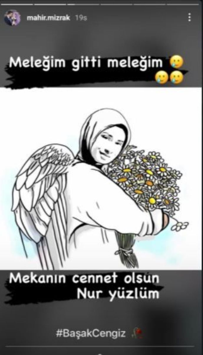 Mızrak, Cengiz'in 'melek kanadı' takılmış fotoğrafını da paylaşarak, "Meleğim gitti meleğim. Mekanın cennet olsun nur yüzlüm" dedi.