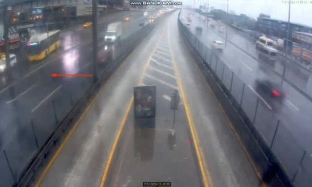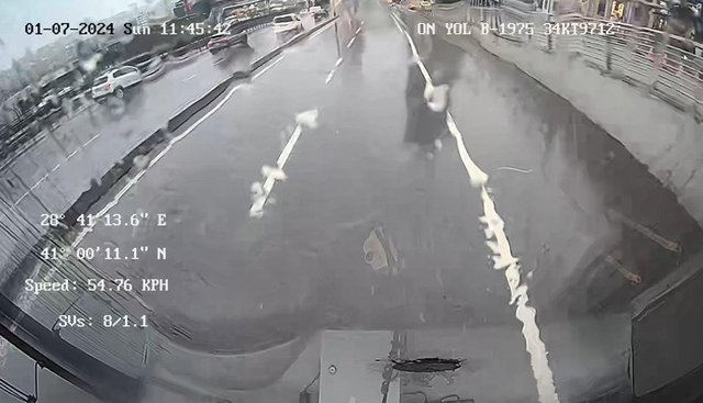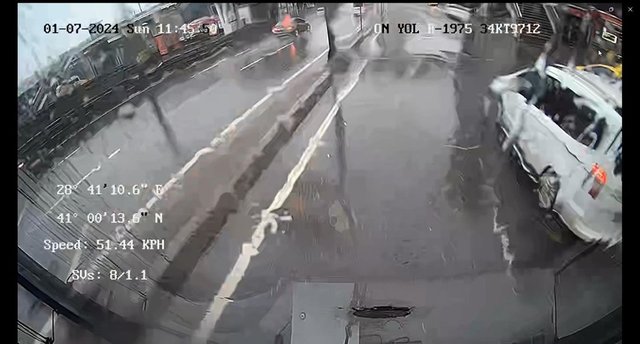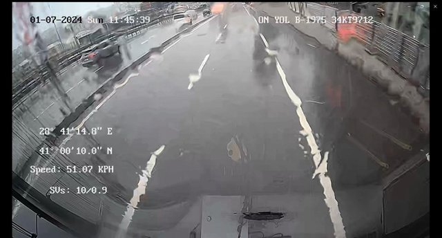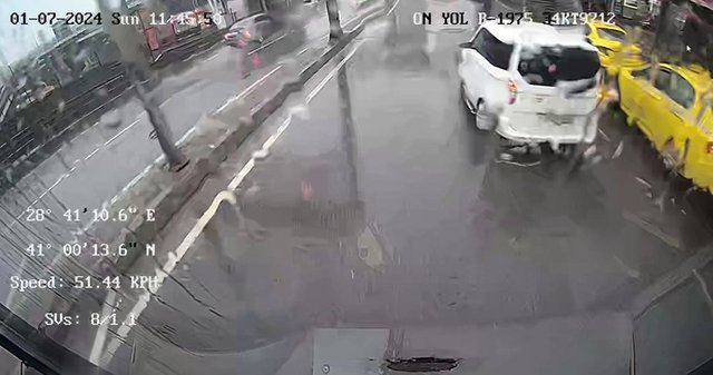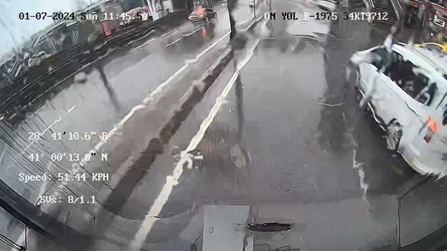 Kaza anının yeni görüntüleri ortaya çıktı. Görüntülerde, yan yolda ilerleyen otobüsün şoförünün, aniden yola çıkan hafif ticari araca çarpmamak için ani manevra yaptığı ve tabela direğine çarptığı görülüyor.