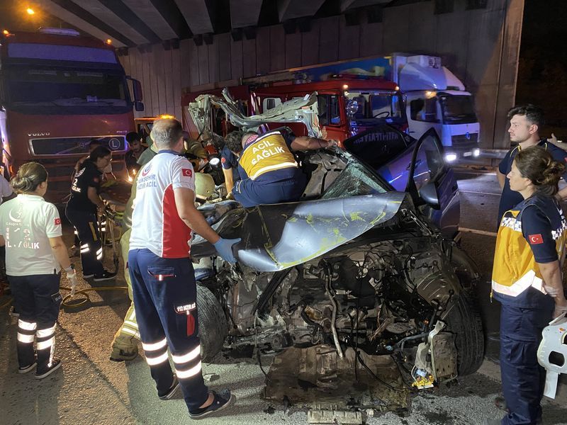 Aynı istikamette ilerleyen başka bir otomobilin sürücüsü Batuhan Gugu, "Ben yaklaşık 90 kilometre hızla gidiyordum, benimle birlikte 2, 3 arabayı makasladı ama fişek gibi geliyordu. TIR'ı kurtaramadı, sol arkasından vurdu. Ben son anda durdum elim ayağım boşaldı "diye konuştu.