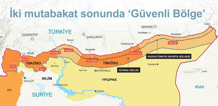 Cumhurbaşkanı Erdoğan ile Rusya Devlet Başkanı Putin görüşmesinin ardından imzalanan Soçi Mutabakatı'yla Suriye'nin kuzeyinde Türkiye sınırına 10 kilometrelik mesafede Türk ve Rus askerlerinin devriyesi başladı.