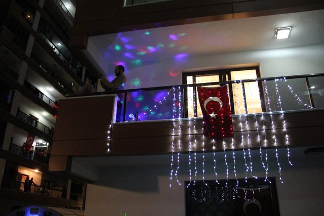 Gerek koronavirüs önlemleri çerçevesinde sosyal mesafeye dikkat eden ve gerekse sokağa çıkmayan vatandaşlar balkon ve pencerelerden okuduğu İstiklal Marşı ile 23 Nisan Bayramı'na katkı sundu. Gece 21.00'de balkonlarda yakılan ışıklar geceye ve kutlamalara ayrı bir renk kattı.