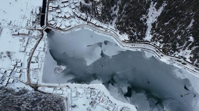 Trabzon'un Çaykara ilçesindeki dünyaca ünlü Uzungöl, yoğun kar yağışının ardından buzla kaplandı. Ortaya çıkan manzara, ziyaretçileri hayran bıraktı. Havadan dron ile kaydedilen görüntüler, doğal güzelliği tüm ayrıntılarıyla gözler önüne serdi