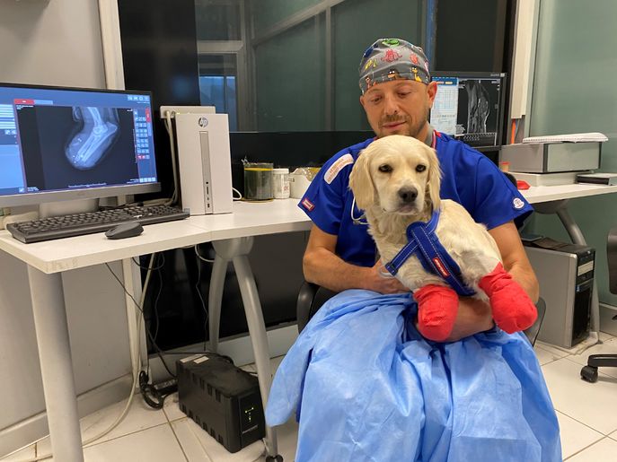 Yaralı köpeği ormanda bulan ve veteriner kliniğine götüren Nurhan Aktaş, “Biz her zamanki gibi beslememizi yapıyorduk. Yol kenarında ön patisi havada bir köpek gördük, hemen arabadan indik. Köpeğin vurulmuş olduğunu düşündük çünkü bir av köpeğiydi. Bizi görünce yanımıza koştu, bitkin ve aç haldeydi. Hemen mama verdik, çok açtı. Patisi omzuna kadar şişmişti, kanaması yoktu ama bir akıntısı vardı. Hemen arabaya aldık ve veteriner kliniğine götürdük. Yapılan ilk muayenesinde silahla vurulduğunu söylediler. Tedavisi olacak ve daha sonra ameliyat edilecek. O halini görünce çok üzüldük" diye konuştu.