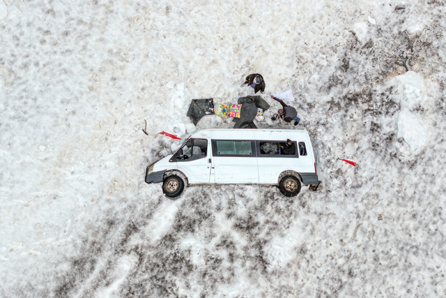 Yaklaşık 4,5 aydır kar altında kalan minibüsünü çıkaracağı günü bekliyor
