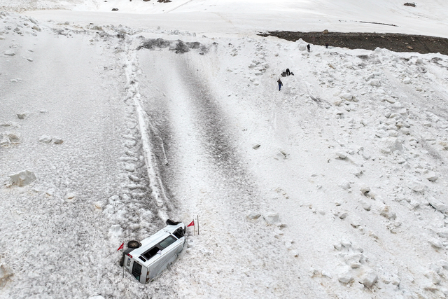 Bizden sonra yine çığ düşmüş ve aracımızı aşağı sürüklemiş. Aracım yaklaşık 4,5 aydır karın altında bekliyor.