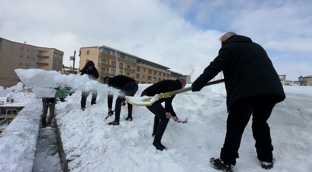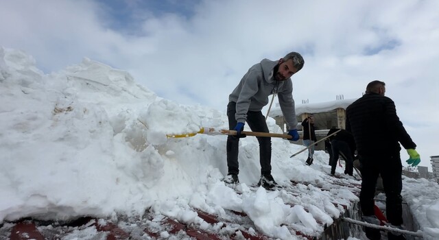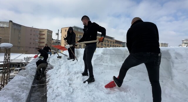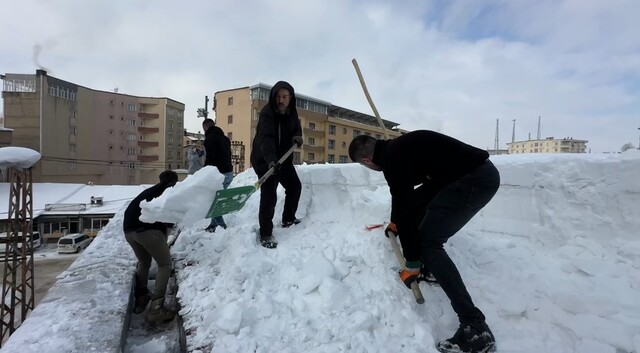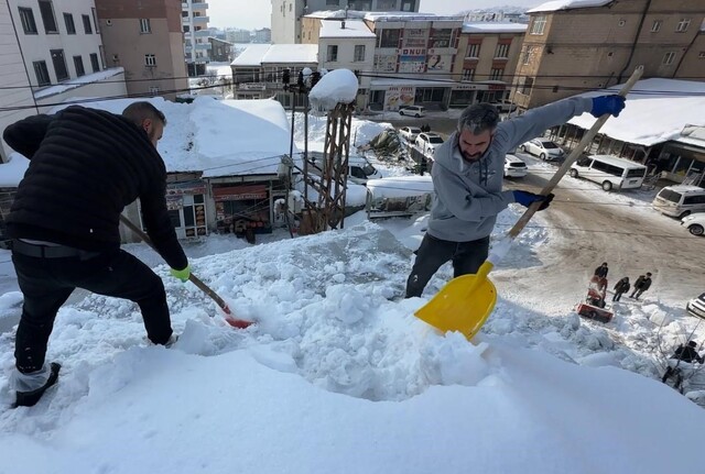 Çatıda yürütülen çalışmalara katılan personel Ayatullah Altıntaş, “Bölgede kış şartları bu yıl oldukça sert geçiyor. Son 3 aydır ilçemizde çok yoğun bir kar yağışı hakim. Merkezde kar yüksekliği neredeyse 2 metreye ulaştı” dedi.