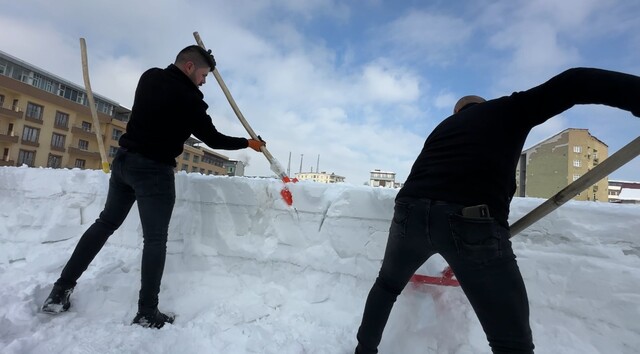 Çalıştıkları marketin geniş bir çatı alanı olduğunu belirten Altıntaş, “Burada biriken kar hem bina hem de çevre güvenliği için risk oluşturuyordu. 20 kişilik bir ekip kurarak el birliğiyle temizliğe başladık. Geceleri hava sıcaklığı eksi 30 dereceye kadar düşüyor. Bu dondurucu soğuğa rağmen çatıyı tamamen temizleyerek riskleri ortadan kaldırmayı hedefliyoruz” ifadelerini kullandı.