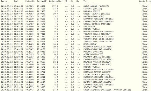Son depremler 23 Mart 2020! AFAD ve Kandilli Rasathanesi son deprem verileri