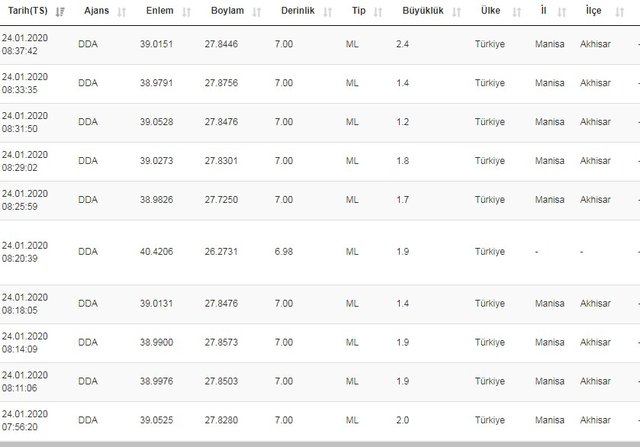 AFAD SON DEPREM LİSTESİ