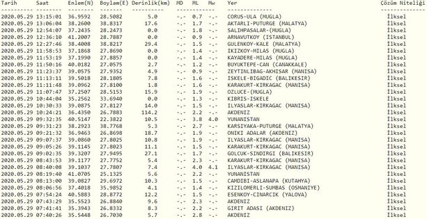Son depremler 29 Mayıs 2020 Cuma! AFAD - Kandilli Rasathanesi son deprem verileri