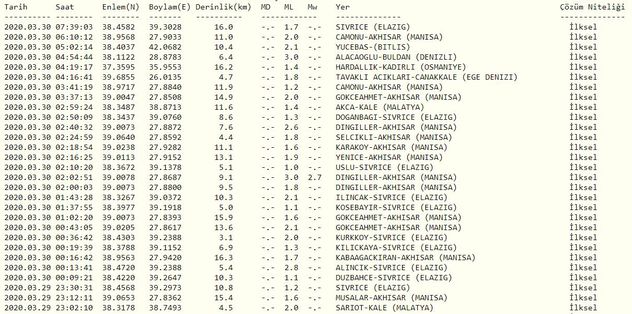 Son depremler 30 Mart 2020 Pazartesi! AFAD ve Kandilli Rasathanesi son deprem verileri