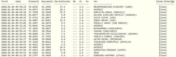 Son depremler, her gün pek çok yer sarsıntısının kaydedildiği ülkemiz ve çevresinde gün içerisinde sık sık bakılan konu başlıklardan birisi. Özellikle son dönem hissedilir depremlerin artmasıyla birlikte bu konu daha çok önem kazandı. AFAD ve Kandilli Rasathanesi de anlık olarak son deprem verilerini kamuoyu ile paylaşıyor. İşte 4 Ocak 2020 Cumartesi yani bugün meydana gelen son depremler