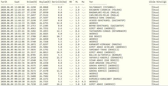 Son depremler 5 Haziran 2020 Cuma! AFAD - Kandilli Rasathanesi son depremler