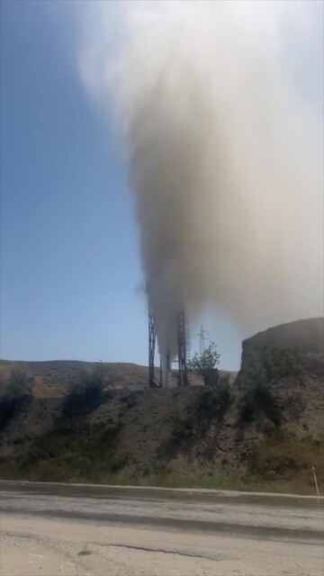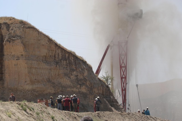 Bir firma tarafından yapılan çalışma sırasında yerin 850 metre altında hidrojen sülfür gazının patlamasıyla jeotermal su metrelerce havaya yükseldi.
