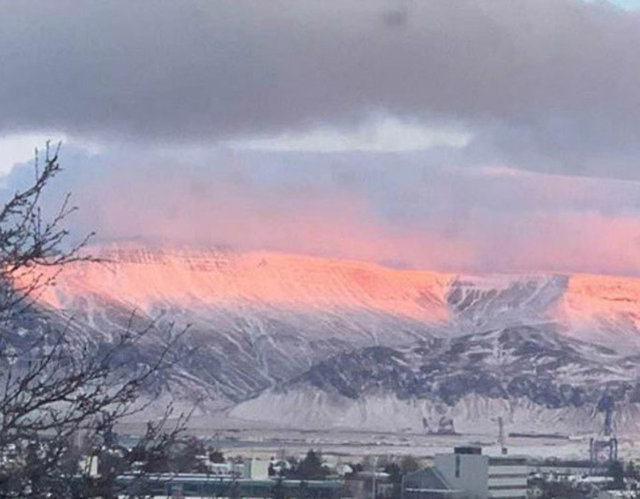 İzlanda’nın başkenti Reykjavik’teki bir pencereden doğa manzarası.