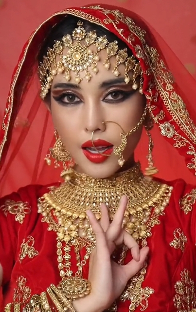 Asoka makyaj trendini başlatan içerik üreticisi, 24 Mart 2024'te büyüleyici bir Hint gelin makyajı yaparken Asoka filmlerinin şarkısına dudak senkronizasyonu yaparak kendini yükleyen Sita Suwarnadwipa.