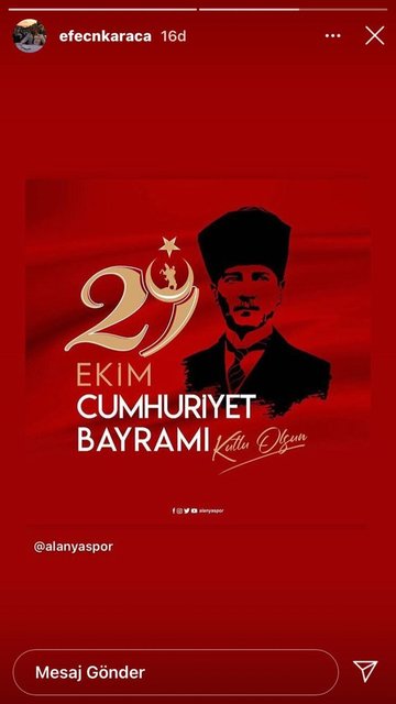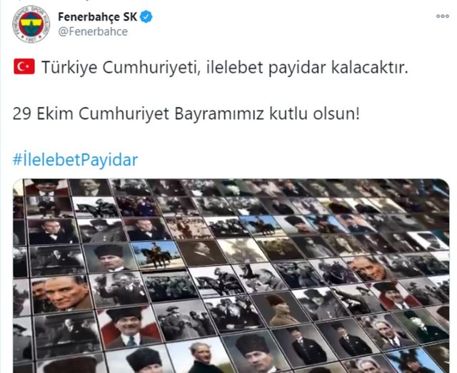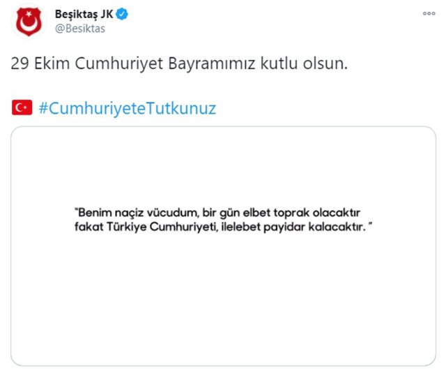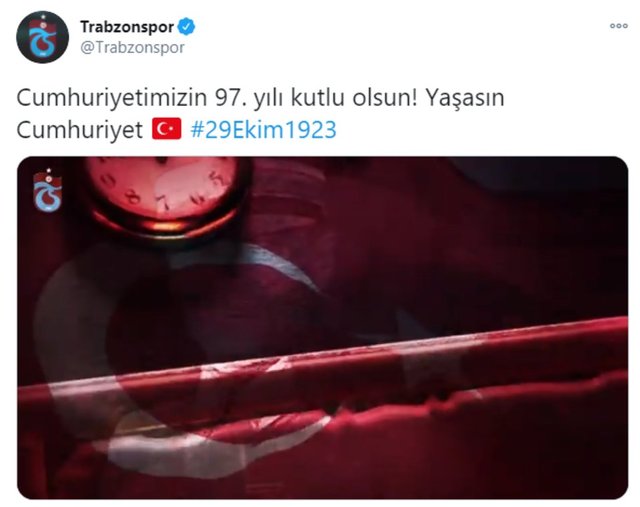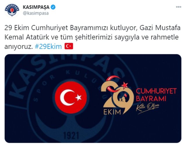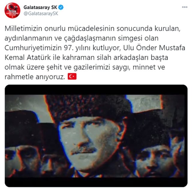 Spor camiası, Ulu Önder Mustafa Kemal Atatürk'ün kurduğu Türkiye Cumhuriyeti'nin 97'nci yıl dönümünü yayınladığı mesajlarla kutladı.