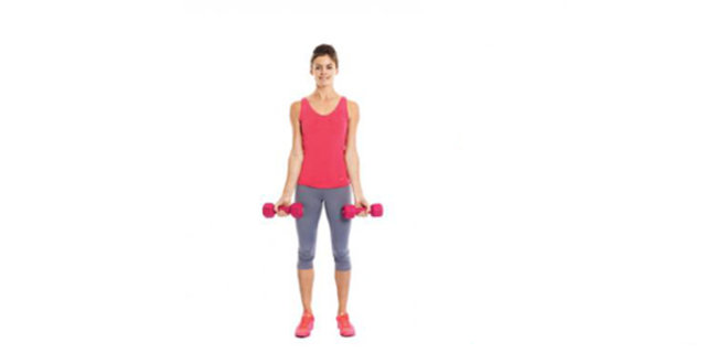 İki elinize de dambılları alın, kollarınız dümdüz kalçanızın yanında olsun. Avuç içleriniz arkaya baksın ve kollarınızı düz bir şekilde geriye doğru ittirin. Bu hareket esnasında, dirsekleriniz düz olmalıdır. Kollarınızı her geri ittirişinizde, nefes veriyor olmalısınız. 12x2 set tekrar yapın.
