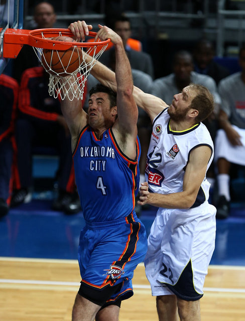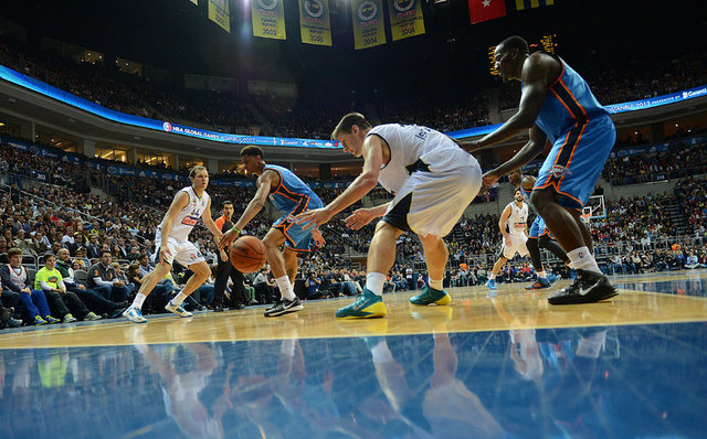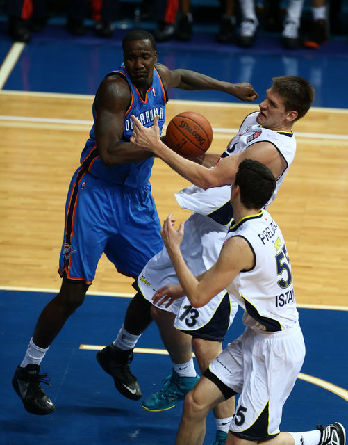 Beko Basketbol Ligi takımlarından Fenerbahçe Ülker, ikinci kez bir NBA takımını konuk etti. "NBA Global Games 2013" kapsamında İstanbul'a gelen Amerikan Ulusal Basketbol Ligi (NBA) takımlarından Oklahoma City Thunder ile karşı karşıya gelen sarı-lacivertli ekip, taraftarlarına bir kez daha bu heyecanı yaşattı. Daha önce 5 Ekim 2012 tarihinde bir başka NBA ekibi Boston Celtics'i Ülker Sports Arena'da ağırlayan Fenerbahçe Ülker, bu karşılaşmayı 97-91 kazanmıştı. Bu sonuçla NBA'den bir takımı yenen 6. Avrupa ekibi olan Fenerbahçe Ülker, Oklahoma City Thunder karşısına ikinci kez aynı başarıyı göstermek için çıktı. Maç öncesi Barış Ermiş ile Thabo Sefolosha, taraftarlara "hoşgeldiniz" konuşması yaptı. Barış Ermiş'in ardından söz alan Sefolosha, Türkçe "Merhaba İstanbul" diyerek basketbolseverleri selamladı.