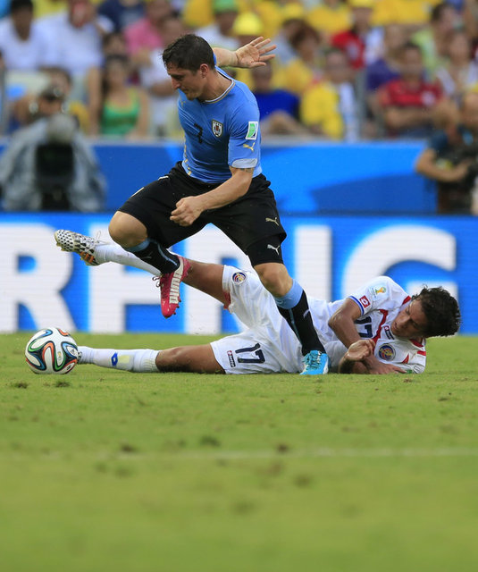 Brezilya'nın ev sahipliğinde düzenlenen Dünya Kupası D Grubu'nda Uruguay, Galatasaraylı Fernando Muslera ve bir dönem Fenerbahçe'de forma giymiş olan Diego Lugano'nun ilk 11'de sahaya çıktığı karşılaşmada 3-1 mağlup oldu.