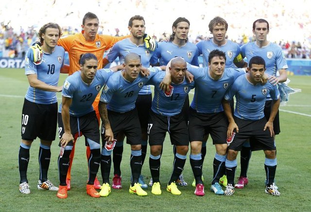 Uruguay: Fernando Muslera, Diego Lugano, Diego Godin, Walter Gargano (Dk. 60 Nicolas Lodeiro), Cristian Rodriguez (Dk. 76 Abel Hernandez), Diego Forlan (Dk.60 Alvaro Gonzalez), Cristhian Stuani, Maximiliano Pereira, Egidio Arevalo, Edinson Cavani, Martin Caceres