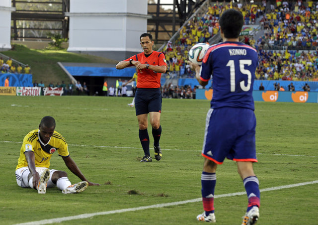 Kolombiya, 17. dakikada penaltıdan gelen golle 1-0 öne geçti. Sol çaprazdan ceza alanına giren Adrian Ramos, Yasuyuki Konno'nun müdahalesi sonrası yerde kaldı ve maçın hakemi penaltı noktasını gösterdi. Penaltı atışında yaptığı sert vuruşla kaleci Eiji Kawashima'yı mağlup eden Juan Cuadrado, Kolombiya'ya 1-0'lık üstünlüğü getirdi.
