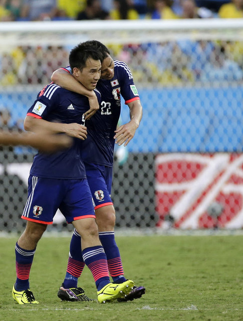 Japonya uzatma dakikalarında skora denge getirdi. 45+2. dakikada Keisuke Honda'nın sağ kanattan gönderdiği ortada ceza sahasında zor pozisyonda yaptığı kafa vuruşuyla topu ağlara gönderen Shinji Okazaki, durumu 1-1 yaptı.