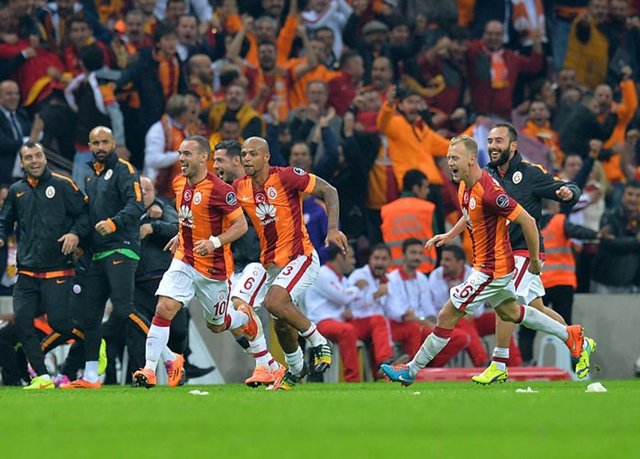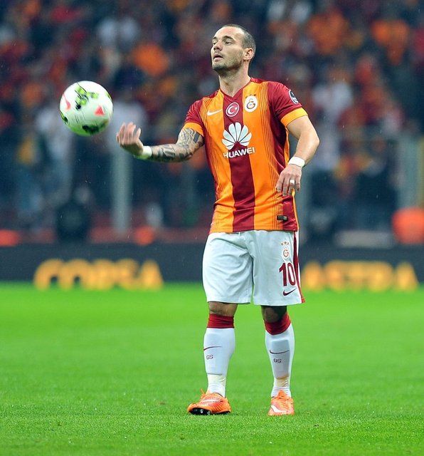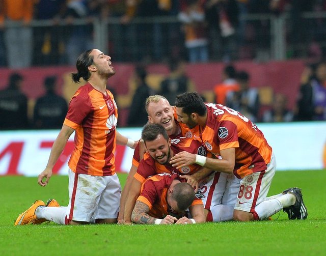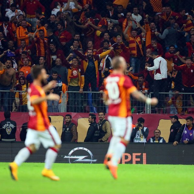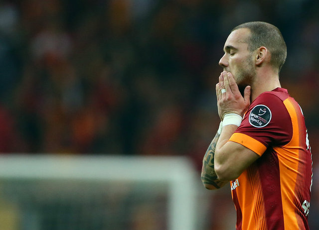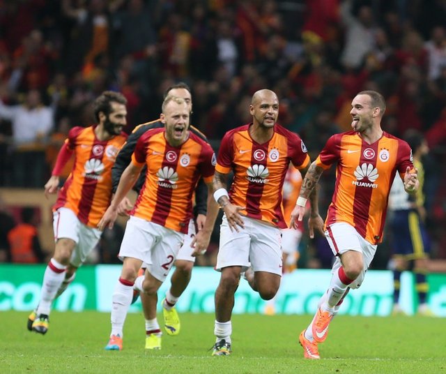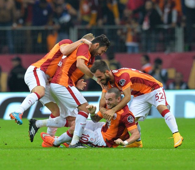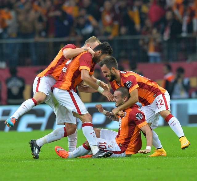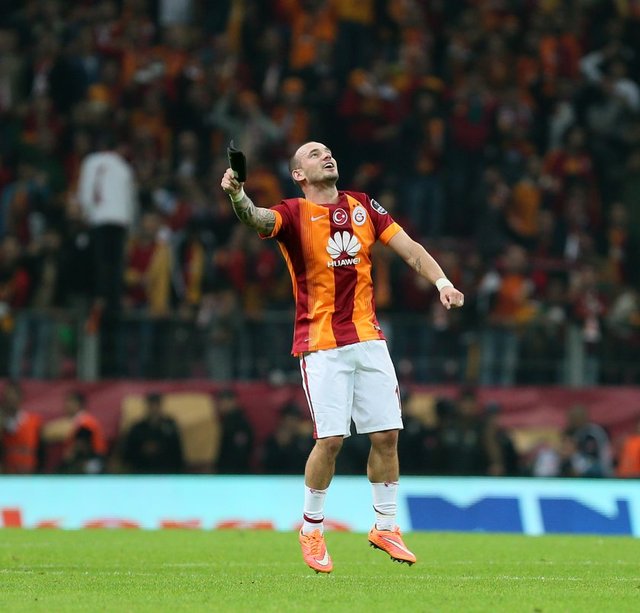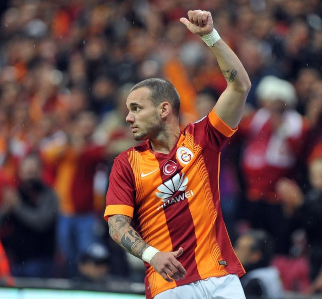Fenerbahçe karşısında Galatasaray'ı galibiyete taşıyan gollere imzasını atan Wesley Sneijder, tribünleri ayağa kaldırdı.