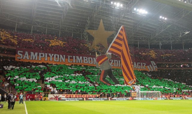 Kareografinin uygulandığı tribüne ayrıca, "Şampiyon Cim Bom yazdıracağız" yazısının yer aldığı dev bir pankart açıldı, bu sırada statta Mehter Marşı çalındı.