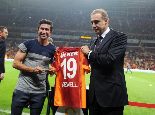 Galatasaray Kulübü İcra Kurulu Başkanı Lutfi Arıboğan tarafından plaket ve 19 numaralı forma takdim edilen Kewell, formayı sırtına geçirerek müsabaka öncesi tribünleri selamladı.