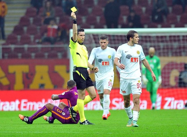 SARI KARTLAR: Dk. 32 Semih Güler, Dk. 33 Causic, Dk. 37 Kaan Kanak, Dk. 90 Mori (Eskişehirspor), Dk. 57 Chedjou, Dk. 83 Bruma, Dk. 86 Emre Çolak (Galatasaray)