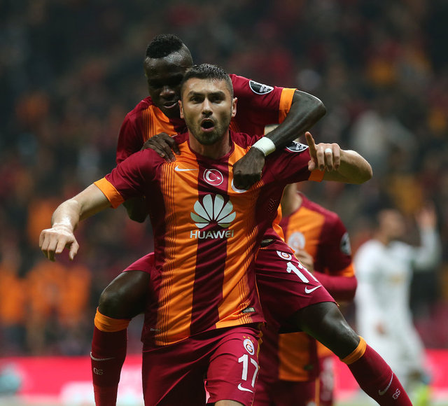 14. dakikada Galatasaray, Burak Yılmaz ile 1-0 öne geçti. Selçuk İnan, Akhisar Belediyespor yarı alanının ortalarından kazanılan serbest vuruşta topu ceza alanına ortaladı. Arka direğe düşen top savunmada Douglas'a çarparak Burak'ın önünde kaldı. Burak, yaptığı sert vuruşla meşin yuvarlağı filelere gönderdi: 1-0