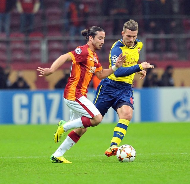 SARI KART: Dk. 15 Flamini, Dk. 65 Debuchy, Dk. 65 Podolski (Arsenal), Dk. 33 Melo, Dk. 43 Tarık Çamdal, Dk. 57 Semih Kaya (Galatasaray)