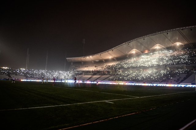 Karşılaşma, henüz 8. dakikada elektrik kesintisi nedeniyle 15 dakika duraklarken, bu kez 90+. dakikada uzatma bölümünde yeniden stat ışıkları söndü.