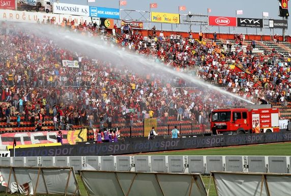 Öte yandan devre arasında havanın sıcak olması nedeniyle Ediz Bahtiyaroğlu tribünündeki Eskişehirspor taraftarları, itfaiye ekipleri lehine tezahürat yaptı. Bunun üzerine statta görevli itfaiye ekipleri taraftarların üstüne tazyikli su sıktı.